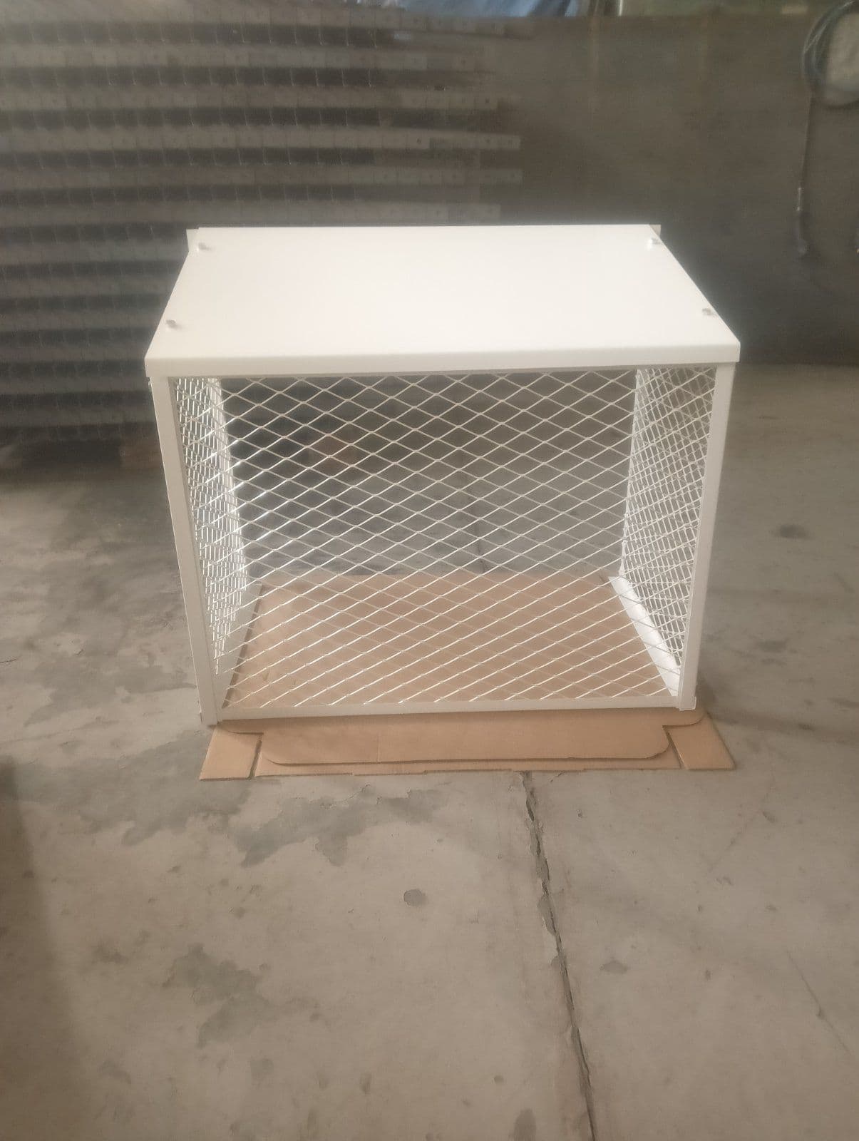 Металлический, сварной, полимерное порошковое покрытие Ral 9016 (белый). Упаковка: стрейч-пленка.